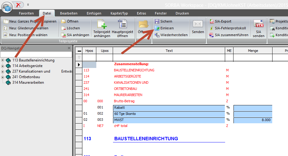 DQD Einlesen / Umgewandelte SIA einlesen